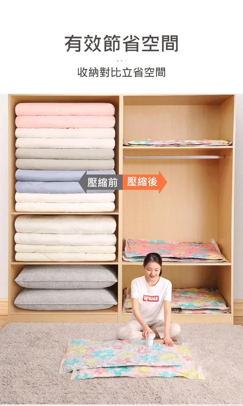 5分鐘前掛式真空壓縮袋推薦,輕鬆節省衣櫃空間 - 【買3送3】尺寸任選★贈電動抽氣機★ NT$999