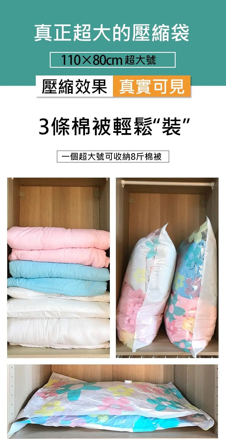 4分鐘前掛式真空壓縮袋推薦,輕鬆節省衣櫃空間 - 【買3送3】尺寸任選★贈電動抽氣機★ NT$999