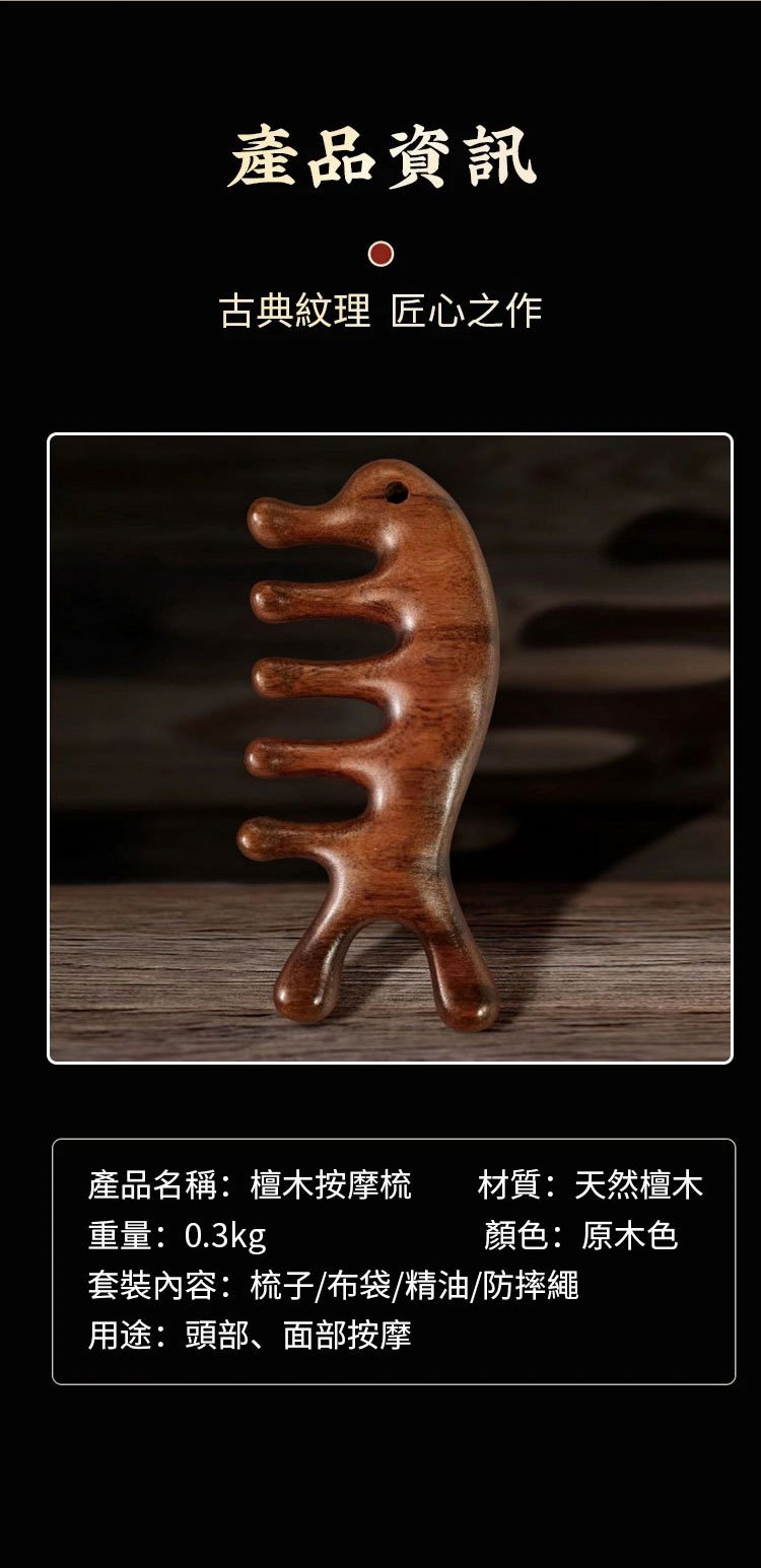 2分鐘前天然檀木美容經絡按摩梳 ◀頭臉按摩◀疏通經絡◀刮痧排毒 按摩穴位促進排毒,面部提拉緊緻 - 【緩解頭痛,按出健康】5入組HK$346