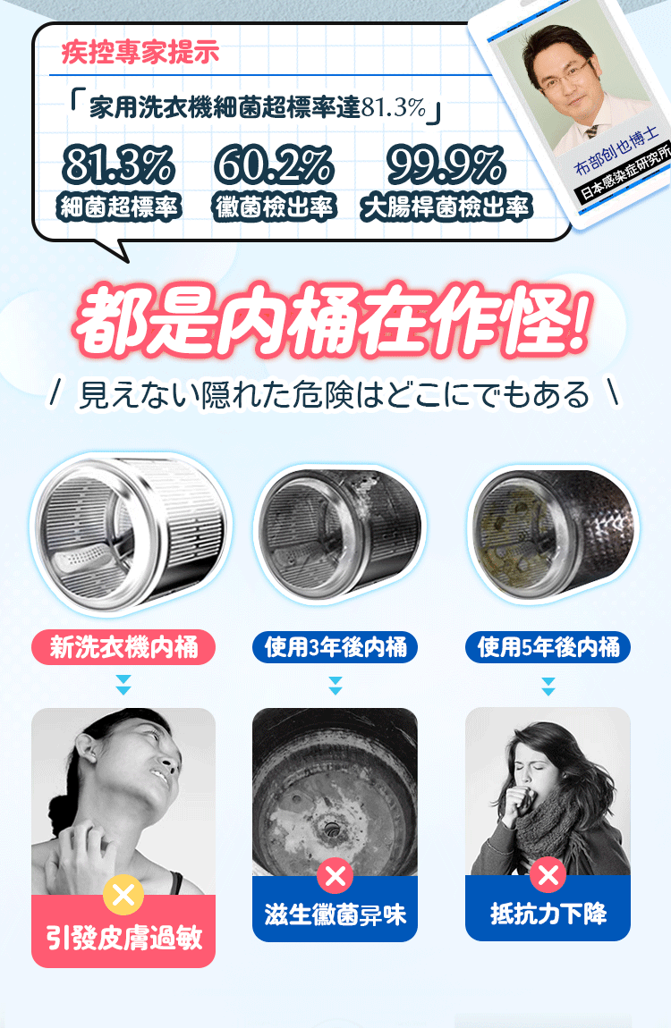 5分鐘前還洗衣機一個清新 ,一鍵免浸泡 洗衣機抑菌清潔液 淡淡清香_你值得擁有 - 【超值特惠】5入組 NT$1190